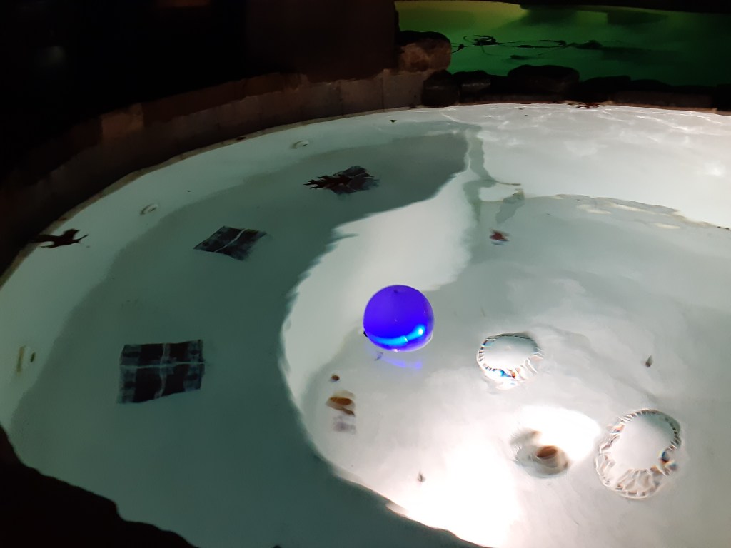 - Solar powered. No need to charge or do anything once you unwrap it and throw it into your hot tub.